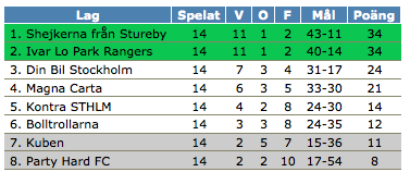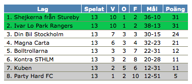 Nu återstår en match. Bolltrollarna är motståndare och en vinst är ett måste för att inte tappa mark. Vi jagas av Kuben som möter Party Hard. Ganska trolig vinst för Kuben, alltså. Om vi däremot revanscherar oss mot Bolltrollarna så kniper vi femteplatsen. Hashtagen uppdateras därmed till #treavtre. Nu avslutar vi den här säsongen med stil!